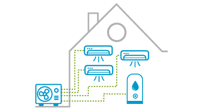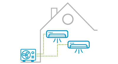 Egyetlen külső egységhez több belső egység csatlakoztatható, így több helyiség hűtésére/fűtésére is alkalmas.